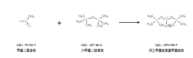 1.通過甲基二氯硅烷和六甲基二硅氧烷合成雙三甲基硅氧基甲基硅烷