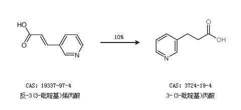 1.通過(guò)反-3(3-吡啶基)烯丙酸合成3-(3-吡啶基)丙酸,收率約10%;