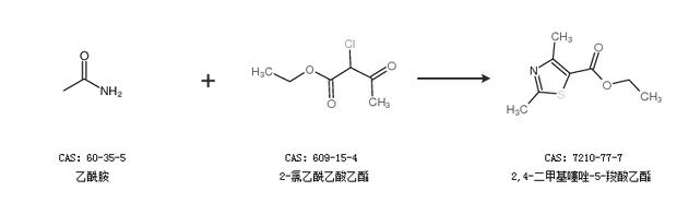 2.通過(guò)乙酰胺和2-氯乙酰乙酸乙酯合成2,4-二甲基噻唑-5-羧酸乙酯