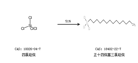 1.通過(guò)四氯硅烷合成正十四烷基三氯硅烷,收率約51%;
