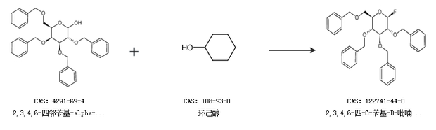 2.通過2,3,4,6-四鄰芐基-alpha-d-吡喃葡萄糖和環(huán)己醇合成2,3,4,6-四-O-芐基-D-吡喃葡萄糖酰氟