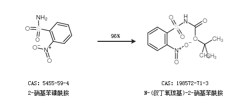 1.通過(guò)2-硝基苯磺酰胺合成N-(叔丁氧羰基)-2-硝基苯酰胺,收率約96%;