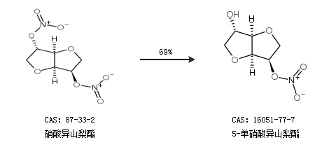 1.通過(guò)異山梨醇合成5-單硝酸異山梨酯,收率約40%;