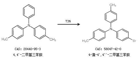 1.通過(guò)4,4''-二甲基三苯胺合成4-溴-4'',4''''-二甲基三苯胺,收率約73%;