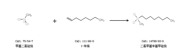 1.通過(guò)甲基二氯硅烷和1-辛烯合成二氯甲基辛基甲硅烷