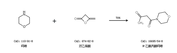 1.通過(guò)嗎啉和雙乙烯酮合成N-乙酰丙酮嗎啉,收率約78%;