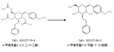 2.通過4-甲氧苯基2,4,6-三-O-乙酰-3-O-芐基-β-D-吡喃葡萄糖苷合成4-甲氧苯基3-O-芐基-β-D-吡喃葡萄糖苷