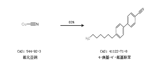 1.通過(guò)氰化亞銅合成4-庚基-4''-氰基聯(lián)苯,收率約83%;