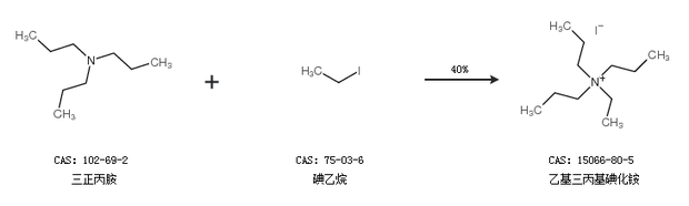 1.通過三正丙胺和碘乙烷合成乙基三丙基碘化銨,收率約40%;