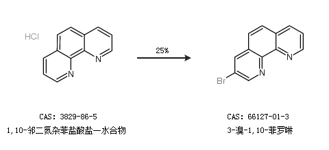 2.通過(guò)1,10-鄰二氮雜菲鹽酸鹽一水合物合成3-溴-1,10-菲羅啉,收率約25%;