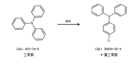 1.通過(guò)三苯胺合成4-溴三苯胺,收率約96%;