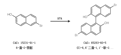 2.通過6-溴-2-萘酚合成(S)-6,6''二溴-1,1''-聯(lián)-2-萘酚,收率約97%;