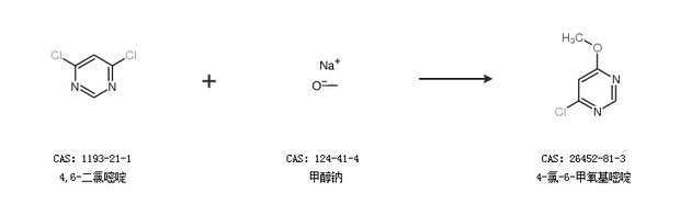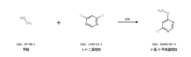 1.通過(guò)甲醇和4,6-二氯嘧啶合成4-氯-6-甲氧基嘧啶,收率約93%;