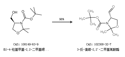 2.通過(R)-(+)-3-叔丁氧羰基-2,2-二甲基-4-噁唑烷羧酸甲合成3-反-溴碳-2,2''-二甲基氧酸酯,收率約91%;