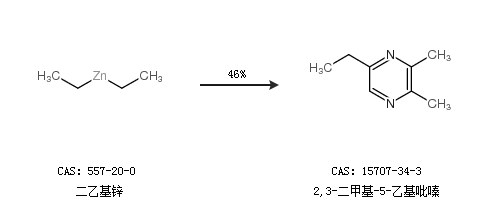 1.通過(guò)二乙基鋅合成2,3-二甲基-5-乙基吡嗪,收率約46%;