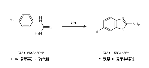 2.通過1-(4-溴苯基)-2-硫代脲合成2-氨基-6-溴苯并噻唑,收率約72%;