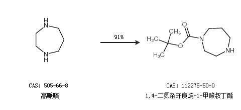 1.通過高哌嗪合成1,4-二氮雜環(huán)庚烷-1-甲酸叔丁酯,收率約91%;
