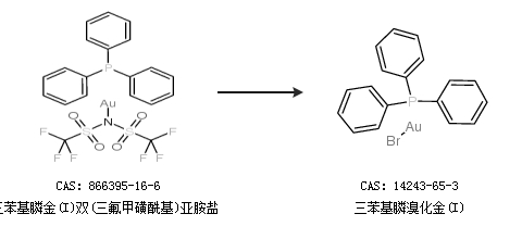 2.通過三苯基膦金(I)雙(三氟甲磺?;?亞胺鹽合成三苯基膦溴化金(I)