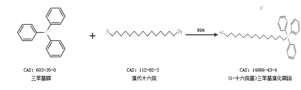 1.通過三苯基膦和溴代十六烷合成(1-十六烷基)三苯基溴化磷鎓,收率約99%;