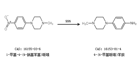 1.通過(guò)1-甲基-4-(4-硝基苯基)哌嗪合成4-(4-甲基哌嗪)苯胺,收率約99%;