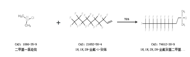 2.通過(guò)二甲基一氯硅烷和1H,1H,2H-全氟-1-癸烯合成1H,1H,2H,2H-全氟癸基二甲基氯硅烷,收率約76%;