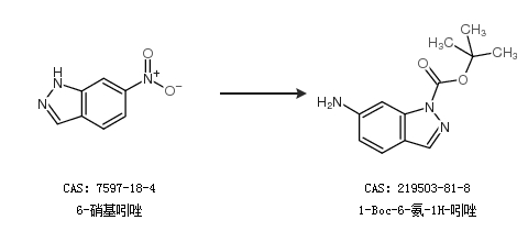 2.通過(guò)6-硝基吲唑合成1-Boc-6-氨-1H-吲唑