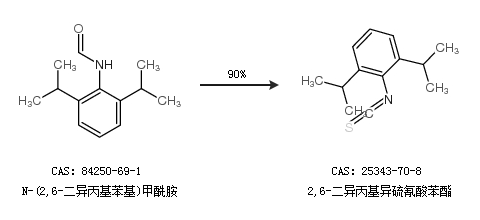 1.通過N-(2,6-二異丙基苯基)甲酰胺合成2,6-二異丙基異硫氰酸苯酯,收率約90%;
