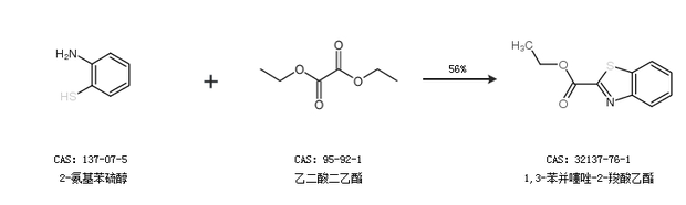 2.通過2-氨基苯硫醇和乙二酸二乙酯合成1,3-苯并噻唑-2-羧酸乙酯,收率約56%;